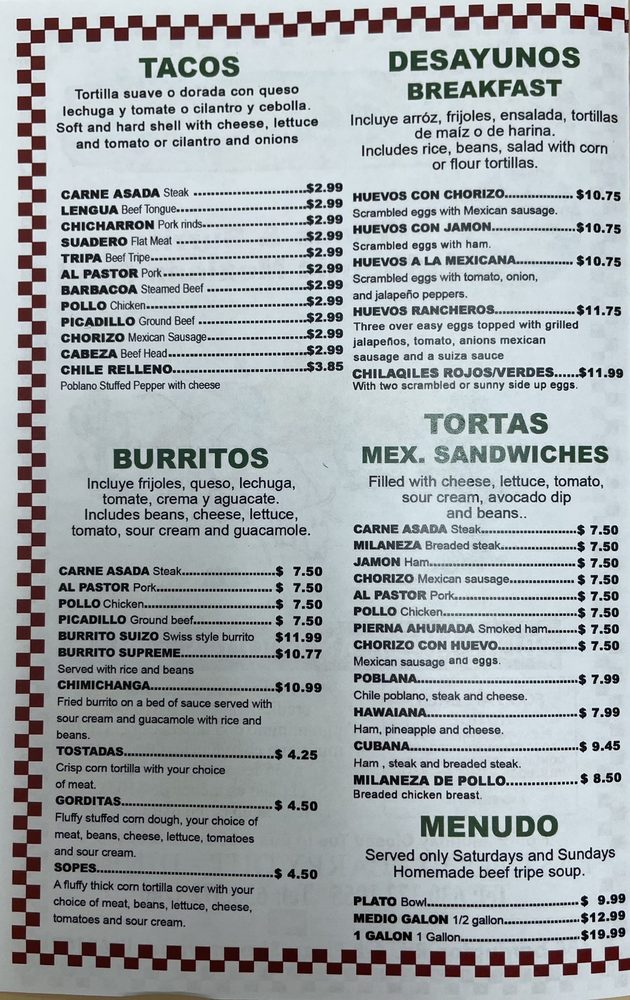 “ Great customer service. We had the Camarones al mojo de ajo the Lengua en salsa Verde. Very flavorful, good portions and freshly made. ”